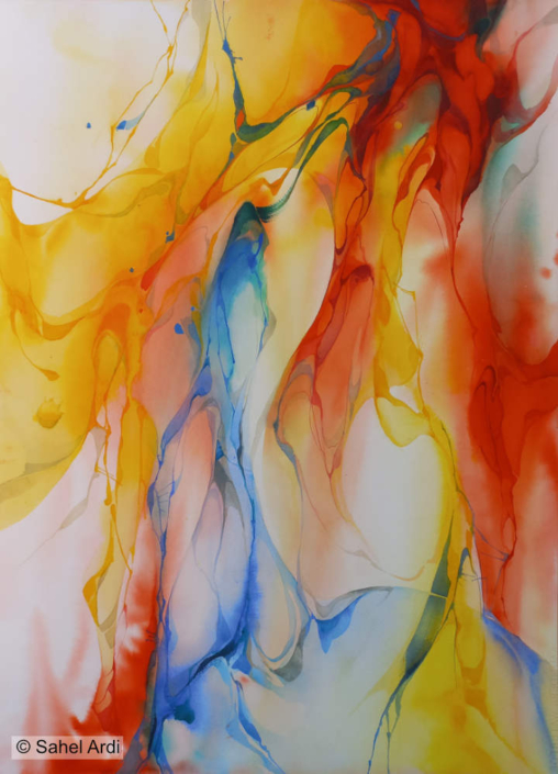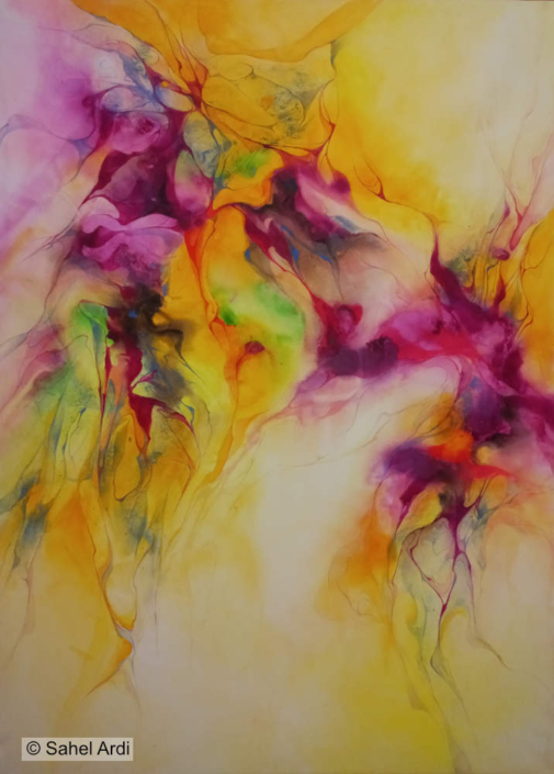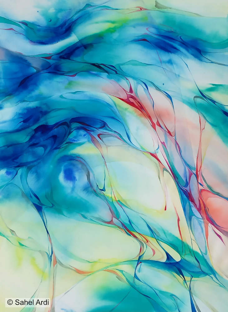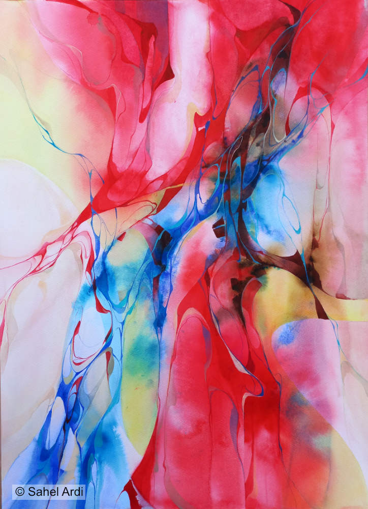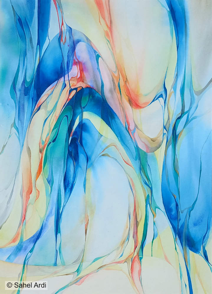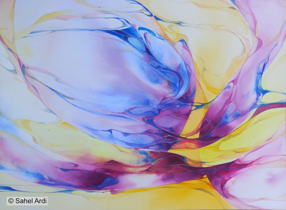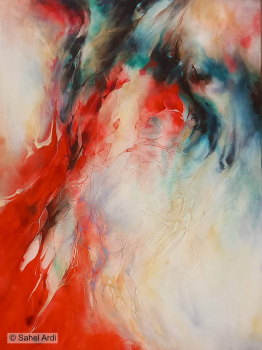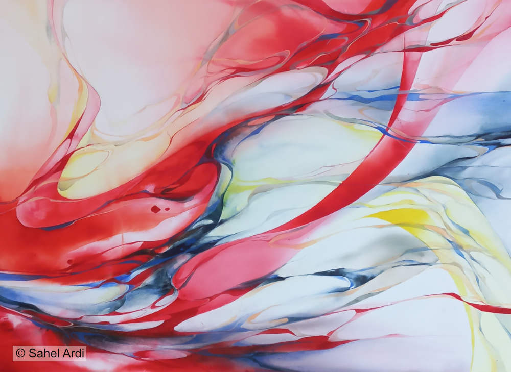 Architecte de formation, j’ai trouvé dans l’abstraction un espace où je peux m’affranchir des formes imposées et laisser émerger un langage plus intime. Mon travail s’enracine dans mon histoire de femme iranienne, dans ce dialogue constant entre le monde matériel et la vie intérieure. L’aquarelle abstraite s’est imposée comme un médium essentiel : une technique exigeante, où l’eau, la lumière et le temps composent ensemble une vérité que je ne peux atteindre autrement. Chaque geste y révèle une émotion, une mémoire, une vibration qui cherche à se dire. Créer sans repères figuratifs m’oblige à écouter ce qui se dépose en moi, à accueillir l’imprévisible et à laisser les formes naître d’elles‑mêmes. J’explore un univers fait de signes, de symboles et de nuances colorées, qui traduisent l’évolution de mon âme et la profondeur de mon subconscient. Cette absence de limites me permet de dépasser le réel pour toucher une dimension plus sensible, presque intemporelle. Mes œuvres sont des fragments de transformation, des instants suspendus où se mêlent fragilité, intensité et silence. Dans l’abstraction, je ne cherche pas à représenter le monde, mais à révéler ce qui, en moi, demande à être vu et partagé.